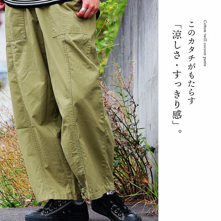 他の画像を見る このカタチがもたらす「涼しさ・すっきり感」。 パンツ コクーンパンツ レディース 無地 綿100 コットン ツイル 通気性 涼しい ポケット ウエストゴム ゆったり 体型カバー カジュアル パティ 販売価格 ¥ 6,490 税込 カートに入れる お気に入りに登録する