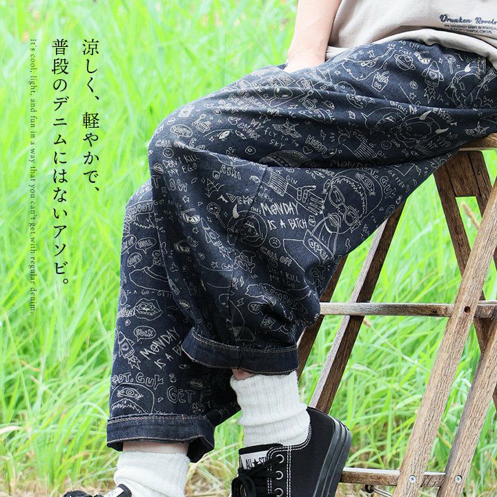他の画像を見る 涼しく、軽やかで、普段のデニムにはないアソビ。 デニム パンツ テーパード ワイド レディース 綿100 コットン 薄手 プリント ロゴ イラスト 薄手 軽い 通気性 涼しい ウエストゴム ゆったり 大きいサイズ 体型カバー カジュアル パティ 販売価格 ¥ 5,390 税込 在庫切れ 詳細を見る お気に入りに登録する