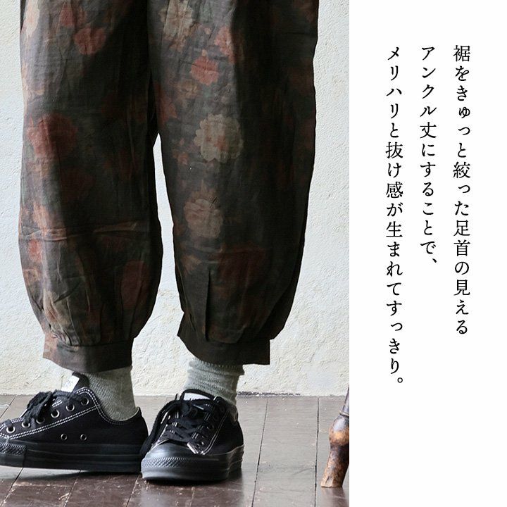 他の画像を見る ちょっと変わったカタチの「涼&良」パンツ。 パンツ エッグパンツ テーパード アンクル丈 レディース 薄手 日本製 オーガニックコットン 薄手 軽い 通気性 総柄 ウエストゴム ゆったり 大きいサイズ 体型カバー カジュアル 夏 パティ 2~3日でお届け 販売価格 ¥ 14,850 税込 在庫切れ 詳細を見る お気に入りに登録する