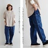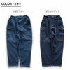 本体:程よい厚みのコットンデニム生地で、しっかりとしていながらもストレッチ性があるので柔らかくゆったりとしたはき心地です。透け感はありません。