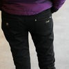 骨盤で穿きました。こぶしが入りますね。ウエストがちょっとゆるかったです。でも膝は少しフィットしていました。Lサイズの方が穿いていてしっくりきましたね。