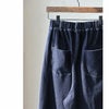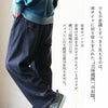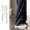 【モデルコメント】骨盤で穿きました。全体的にしっかりとゆとりがあります。中は、厚手のレギンスくらいは合わせても問題はありませんね。 【客観的コメント】かかとはほとんど隠れるくらいの丈の長さです。ゆとりはありながらも、良いシルエットで穿けていましたね。