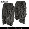 【モデルコメント】ウエストで穿きました。ウエストゴムは適度なフィット感です。中は、スウェットパンツも合わせやすそうなゆとりがありました。 【客観的コメント】裾が地面に少し擦れるくらいの丈の長さです。ゆとりはありながらも、良いシルエットで穿けていましたね。