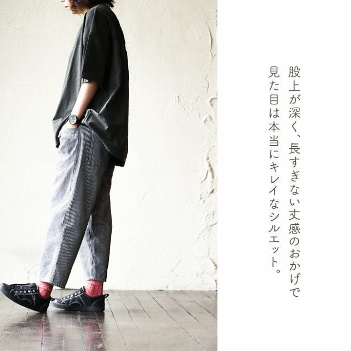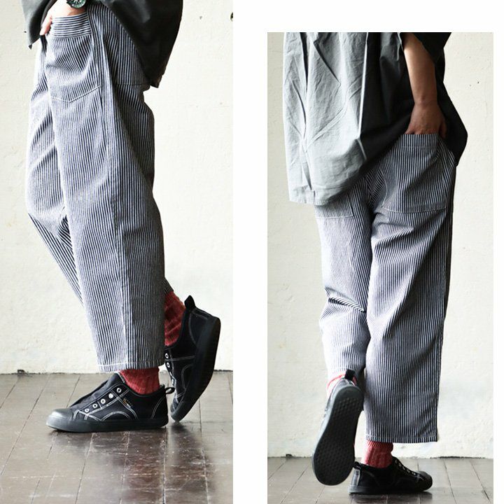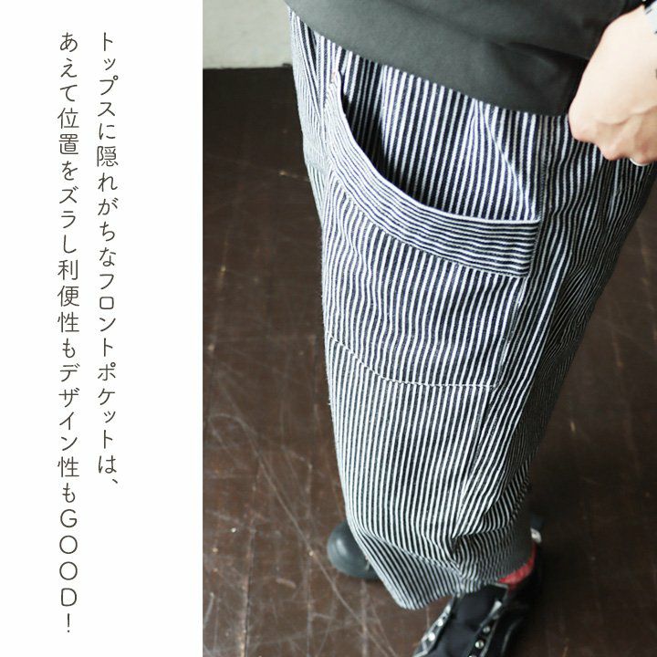 他の画像を見る カッコいいは大前提、すっきりさもアソビもあるヒッコリー。 パンツ テーパード ワイド メンズ レディース ヒッコリー ストライプ 綿100% ポケット付き 丈夫 しっかり生地 ウエストゴム ゆったり 体型カバー 股上深い すっきり カジュアル ワーク ヴィンテージ PATY パティ GENTIL ジャンティ 2~3日でお届け 販売価格 ¥ 7,590 税込 在庫切れ カートに入れる お気に入りに登録する