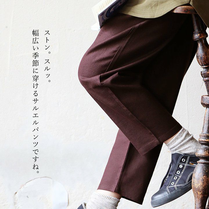 他の画像を見る ストン。スルッ。幅広い季節に穿けるサルエル。 サルエルパンツ パンツ 着痩せ 細見え レディース ウエストゴム 綿麻 涼しい 軽い シワになりにくい カジュアル 2~3日でお届け 販売価格 ¥ 4,290 税込 在庫切れ カートに入れる お気に入りに登録する