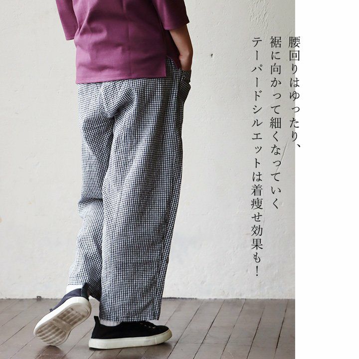 他の画像を見る 優しい風合いで、涼しさも。 着痩せ パンツ テーパード レディース ギンガムチェック 綿麻 配色切り替え 涼しい 薄手 軽い ウエストゴム ゆったり メンズライク カジュアル GENTIL ジャンティ 2~3日でお届け 販売価格 ¥ 7,590 税込 在庫切れ カートに入れる お気に入りに登録する