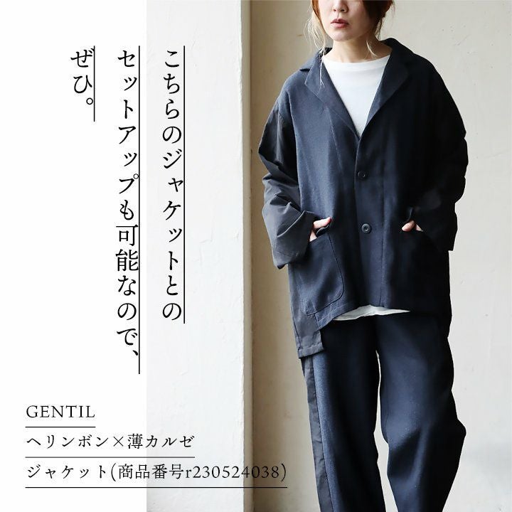 他の画像を見る シンプルすぎず、派手すぎず、ちょっとしたアソビを。 パンツ テーパード ストレート イージー レディース 異素材切り替え 配色 ヘリンボーン 綿100% 細見え ウエストゴム ゆったり 大人カジュアル GENTIL ジャンティ 2~3日でお届け 販売価格 ¥ 7,590 税込 在庫切れ カートに入れる お気に入りに登録する
