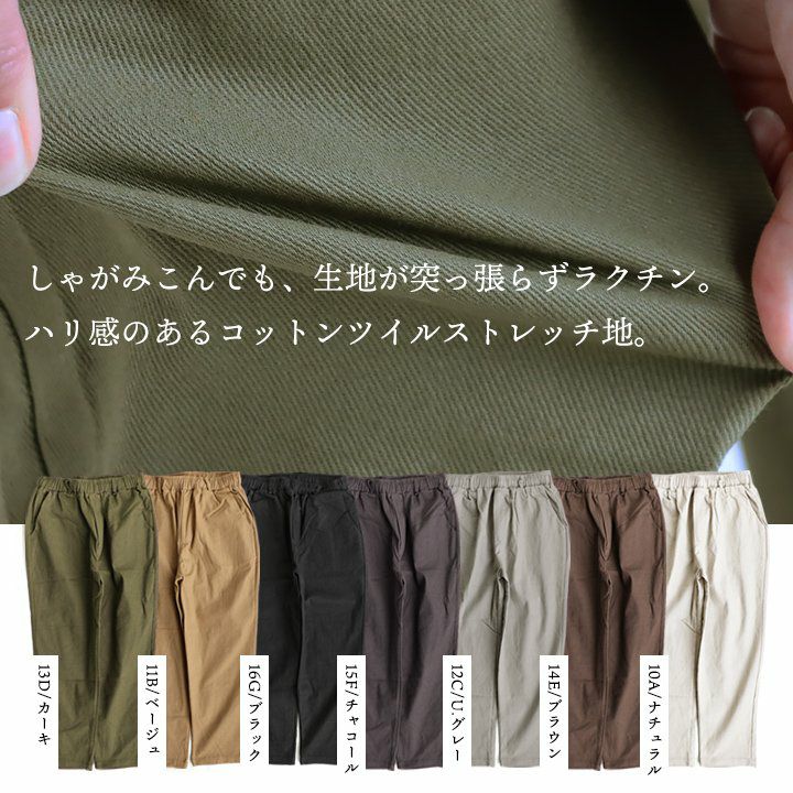 他の画像を見る 動き回っても、しゃがみこんでも、とってもラクチン。 パンツ テーパードパンツ レディース 無地 しっかり生地 ストレッチ 伸縮性 涼しい ラクチン ゆったり ウエストゴム 体型カバー 大きいサイズ 着痩せ カジュアル PATY パティ 2~3日でお届け 販売価格 ¥ 4,290 税込 在庫切れ カートに入れる お気に入りに登録する