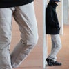 骨盤で穿きました。フィット感は軽い程度で全然気になりません。ボクくらいの体型だと、シルエット重視で穿くならLサイズ、適度にゆとりを持って穿くならLLサイズって感じのサイジングでした。このサイズなら、もう少しガッチリしてても、オススメはしやすいサイジングですね。