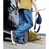 【モデルコメント】骨盤で穿きました。中は、スキニーパンツも合わせられそうです。ゆったりと穿けるサイジングでしたね。 【客観的コメント】裾は地面に少し擦れるくらいの丈の長さです。ゆったりとしたシルエットで穿きたいなら、選んでも良さそうなサイジングですね。