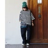 【モデルコメント】骨盤で穿きました。ウエストゴムは適度なフィット感です。中は、スウェットパンツも合わせられそうなゆとりがありましたね。