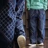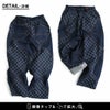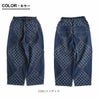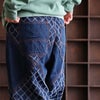 メンズもうらやむ、渋い個性派デニム。 パンツ テーパード ワイド デニム レディース ダイヤ柄 ジャガード リメイク風 10オンスデニム 綿 コットン100 インディゴデニム ウエストゴム 紐付き ゆったり 大きいサイズ カジュアル PATY