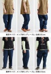 【モデルコメント】骨盤で穿きました。ウエストゴムは適度なフィット感です。それ以外は、しっかりとゆとりのあるサイジングでしたね。 【客観的コメント】まもるくらいの体型なら、問題のないサイジングだね。