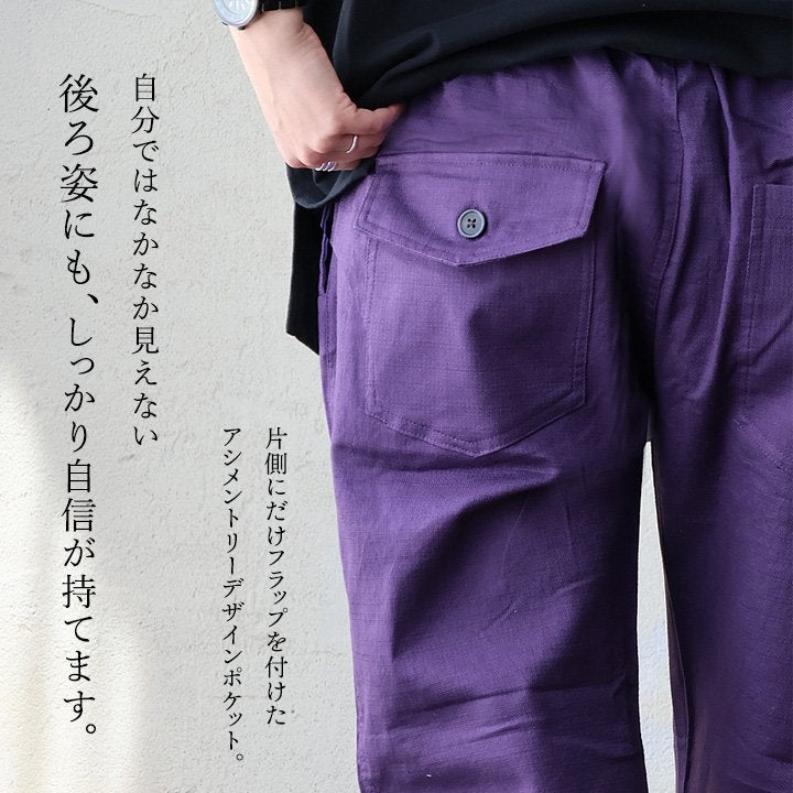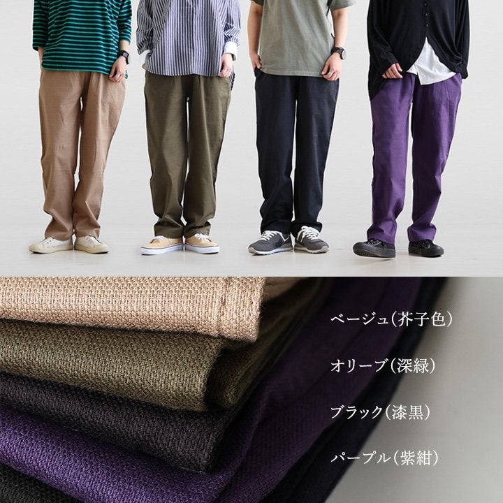 他の画像を見る 「家族にも穿かせてあげたい。」伸びて張り付かない涼感パンツ。 麻 パンツ メンズ レディース 夏 涼しい 伸びる 微ストレッチ 綿麻 しっかり 丈夫 ウエストゴム 裾リブ ポケット すっきり 細見え スリム テーパード カジュアル 洗える 軽い 大きいサイズ パティ Spants スパンツ 2~3日でお届け 販売価格 ¥ 5,390 税込 詳細を見る お気に入りに登録する