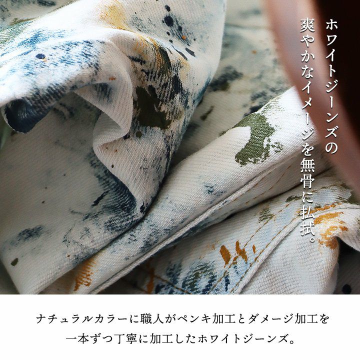 他の画像を見る ホワイトジーンズの爽やかなイメージを無骨に払拭。 Johnbull ジョンブル デニム ジーンズ テーパード ハイウエスト メンズ レディース ホワイト デニム 10オンス ダメージ ペンキ 綿100% ノンストレッチデニム 日本製 しっかり生地 ゆったり 細見え すっきり カジュアル ヴィンテージ パティ 2~3日でお届け 販売価格 ¥ 33,000 税込 在庫切れ 詳細を見る お気に入りに登録する