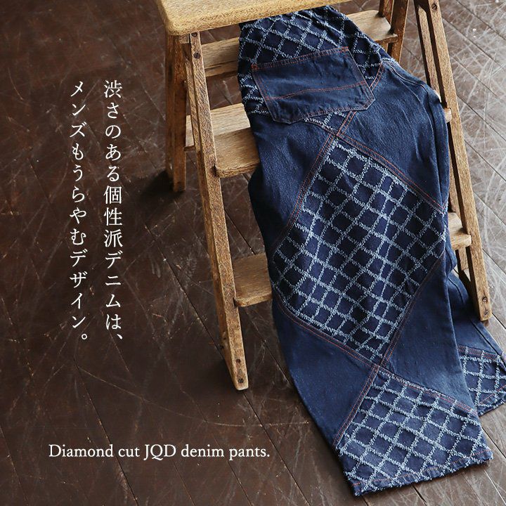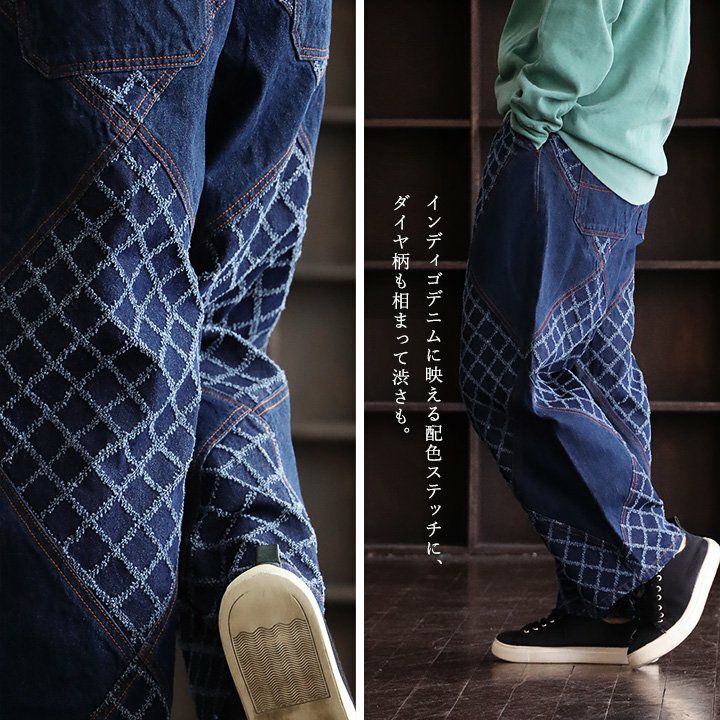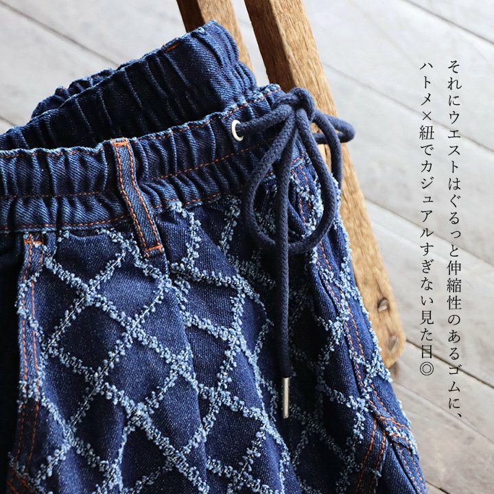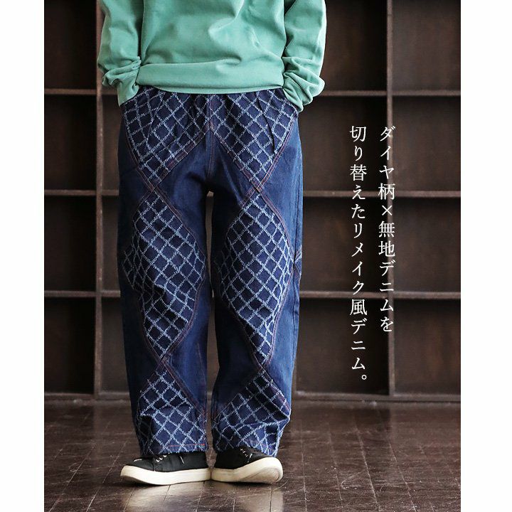 他の画像を見る メンズもうらやむ、渋い個性派デニム。 パンツ テーパード ワイド デニム レディース ダイヤ柄 ジャガード リメイク風 10オンスデニム 綿 コットン100 インディゴデニム ウエストゴム 紐付き ゆったり 大きいサイズ カジュアル PATY 2~3日でお届け 販売価格 ¥ 9,790 税込 在庫切れ カートに入れる お気に入りに登録する