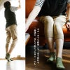 【無地】骨盤で穿きました。穿けなくはないんですが、ボクくらいの体型だとお腹とふくらはぎに強めのフィット感があります。窮屈感もそれなりに感じますね。細身ですっきりと穿きたいなら、選んでも良いかなって感じのサイジングでしたよ。