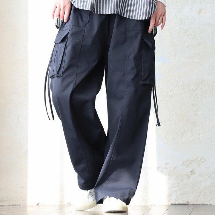 らしさが際立つ「カーゴパンツ」。 パンツ カーゴパンツ ストレート レディース ポリエステル100 しっかり生地 ハリ 薄手 軽い ウエストゴム ゆったり 体型カバー カジュアル メンズライク 春 パティ