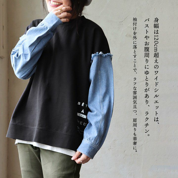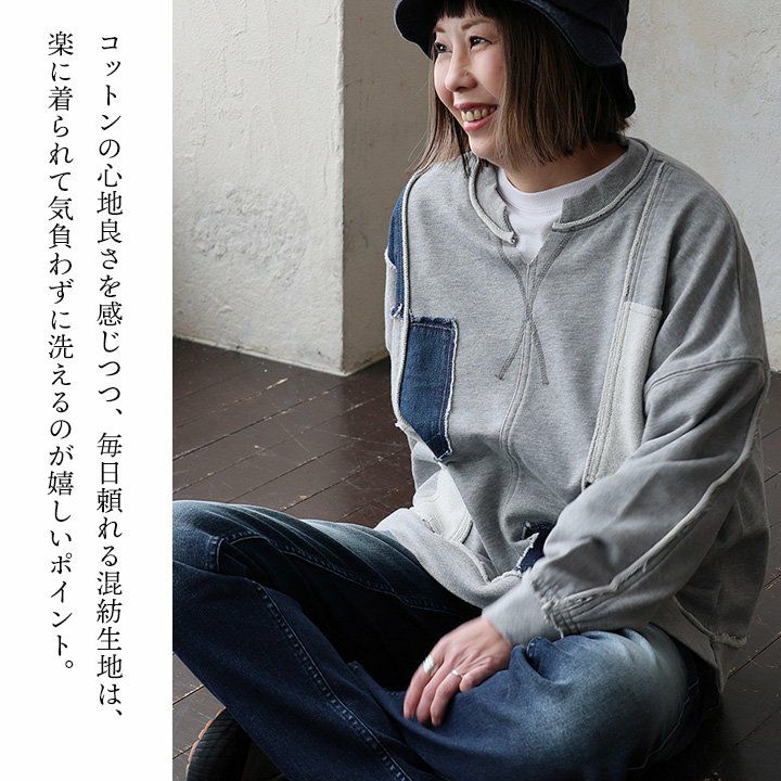 他の画像を見る くっつけてみたら、良い感じ。 スウェット トレーナー レディース クルーネック リメイク デニム 綿100 コットン 裏毛 伸縮性 ゆったり 大きいサイズ 体型カバー カジュアル 春 秋 冬 パティ KAKELA&TRANQUIL カケラ&トランクイル 2~3日でお届け 販売価格 ¥ 9,790 税込 在庫切れ カートに入れる お気に入りに登録する