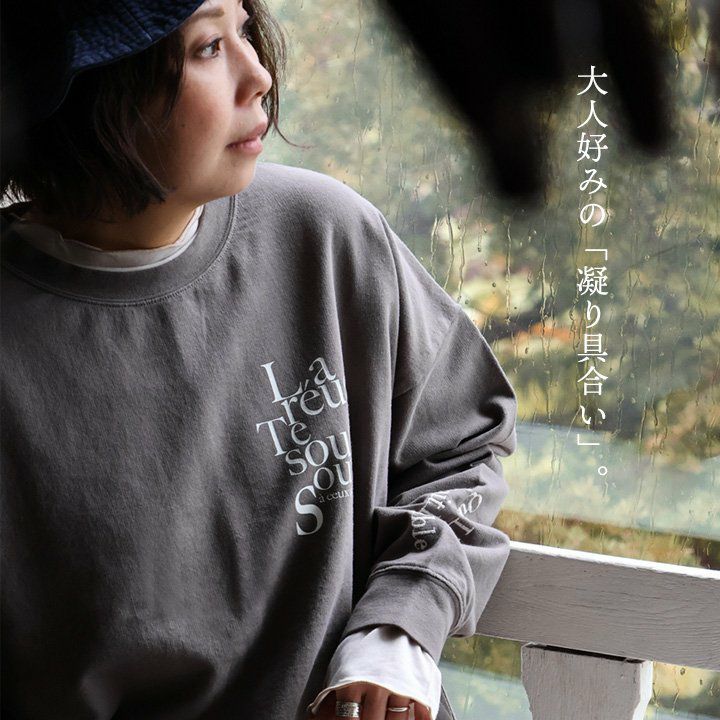 他の画像を見る スウェットとは違った、ラフさと存在感。 KAKELA&TRANQUIL カケラ&トランクイル スウェット 長袖 レディース クルーネック 褪せ色 ピグメント アウトステッチ リメイク風 綿100 コットン ミニ裏毛 大きいサイズ 体型カバー カジュアル 秋 冬 春 パティ 2~3日でお届け 販売価格 ¥ 7,150 税込 カートに入れる お気に入りに登録する