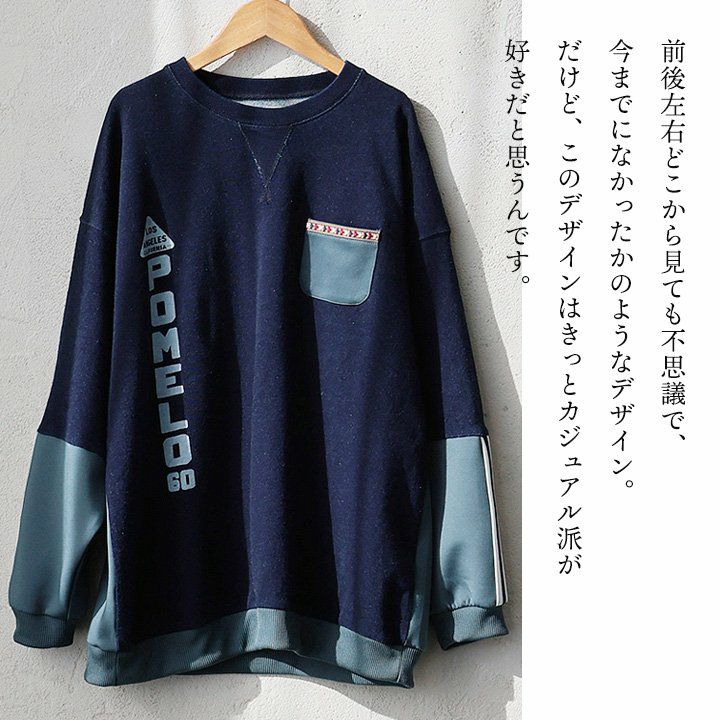 他の画像を見る 不思議な見た目だけど、惹かれるデザイン。 スウェット トレーナー 長袖 レディース 異素材切り替え 綿100 コットン ミニ裏毛 インディゴ ダンボール ライン 袖リブ 大きいサイズ 体型カバー カジュアル レトロ 秋 冬 春 パティ 2~3日でお届け 販売価格 ¥ 7,590 税込 在庫切れ カートに入れる お気に入りに登録する