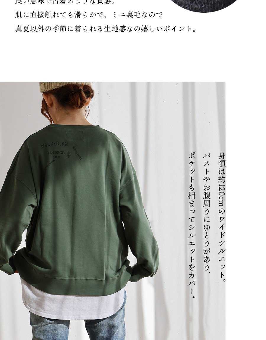 「普通」がイヤな私は、「ポケット」で差を付ける。 スウェット トレーナー 長袖 レディース クルーネック 綿100 コットン ミニ裏毛 ポケット レース ロゴ 異素材切り替え 大きいサイズ 体型カバー カジュアル レトロ 秋 冬 春 パティ