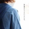 別布:薄手でサラッとした、デニム素材のシャツ生地。伸縮性・透け感はありません。