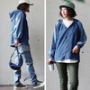 「カジュアルの王道」な見た目で、サラッと軽やかなギャップ。 パーカー スウェット 長袖 レディース デニム ミニ裏毛 インディゴ 綿100% コットン 切り替え 薄手 軽い 伸縮性 ゆったり 体型カバー 大きいサイズ 着痩せ カジュアル パティ