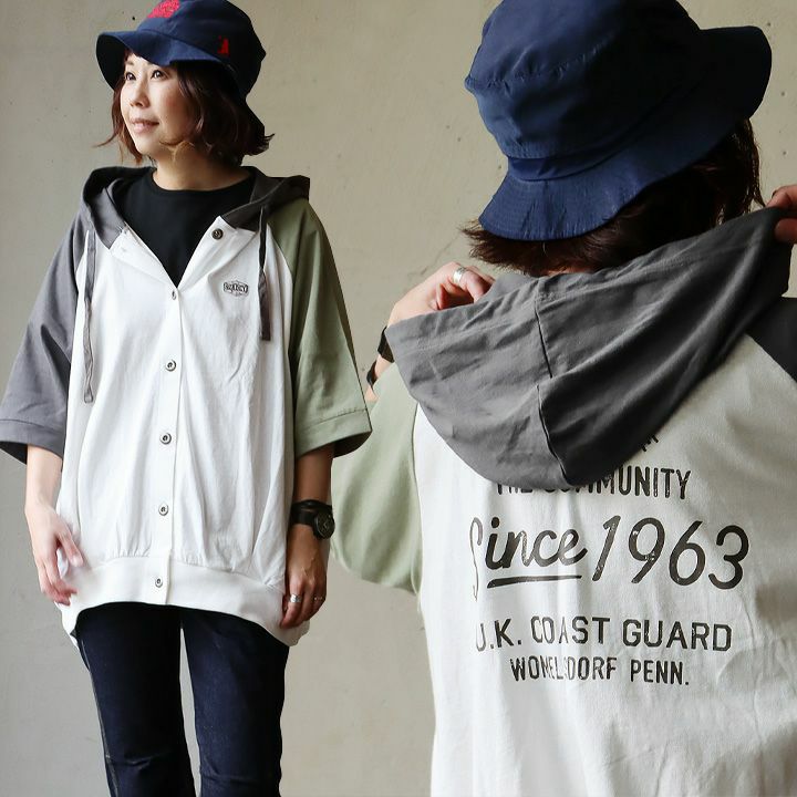 カジュアル派のツボを押さえた「クレイジーカーディガン」。 【訳あり】 パーカー カーディガン 5分袖レディース 配色切り替え クレイジー 軽い 薄手 綿100% コットン ゆったり 体型カバー 大きいサイズ カジュアル メンズライク 夏 夏服 パティ