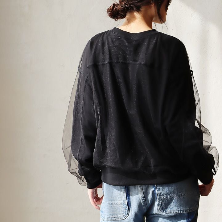 「シア―デビュー」しやすい、ドッキング感。 カットソー 長袖 トレーナー レディース チュール 裏毛 プルオーバー ドッキング シア― ワイド 着痩せ 細見え ゆったり 大きいサイズ 秋 冬 カジュアル パティ