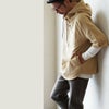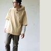 【モデルコメント】中は、カットソー2枚くらいは合わせても問題はありません。程好くゆとりを持って着れました。 【客観的コメント】お尻はほとんど隠れる着丈の長さです。バランスの良いシルエットで着れていましたね。