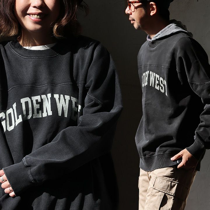 着こんだような風合い、丈夫な生地感。 スウェット トレーナー 長袖 メンズ レディース ロゴプリント 綿100 コットン ピグメント加工 褪せ色裏起毛 しっかり生地 丈夫 伸縮性 暖かい 秋 冬 カジュアル PATY