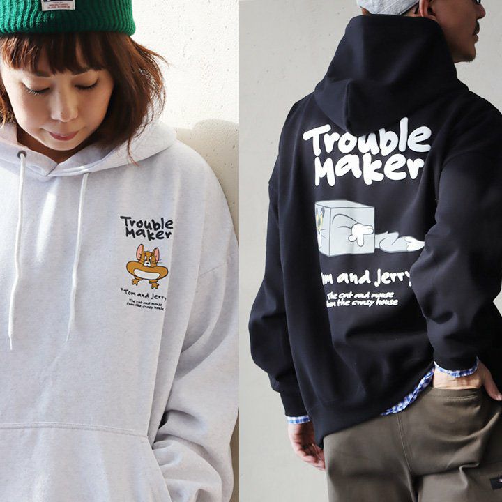 トラブルメーカーはどっち!? パーカー スウェット 長袖 メンズ レディース バックプリント 裏起毛 コットン ヘビーウェイト 肉厚 しっかり生地 丈夫 ゆったり 大きいサイズ カジュアル PATY