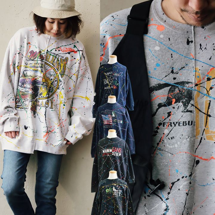 独特だけど、古着好きなら絶対好きなハズ! スウェット トレーナー 長袖 メンズ レディース プリント 切り替え ワイド ゆったり 大きいサイズ カジュアル ヴィンテージ 古着 PATY パティ