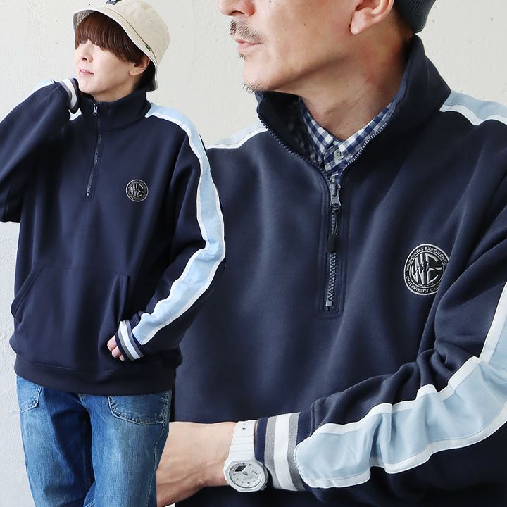 とことんヴィンテージ感あるものを。 ハーフジップ スウェット トレーナー 長袖 メンズ レディース ハイネック 配色切り替え コットン ポリエステル 裏起毛 伸縮性 ゆったり 大きいサイズ 体型カバー カジュアル パティ WILDERNESS EXPERIENCE ウィルダネスエクスペリエンス