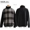 ニットに見えて、実はスウェット。 スウェット 長袖 タートルネック メンズ レディース 異素材切り替え 無地 チェック柄 裏起毛 コットン ポリエステル 暖かい 防寒 伸縮性 大きいサイズ カジュアル 秋 冬 パティ