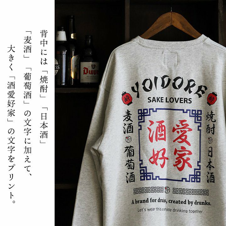 他の画像を見る お酒愛好家のみなさんへ。 スウェット トレーナー 長袖 メンズ レディース クルーネック バックプリント コットン100% 綿 裏毛 伸縮性 ゆったり 大きいサイズ カジュアル パティ YOIDORE ヨイドレ 2~3日でお届け 販売価格 ¥ 8,690 税込 在庫切れ カートに入れる お気に入りに登録する