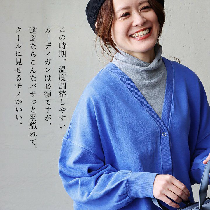 他の画像を見る ガシッとタフな「いつもの感じ」を羽織る。 カーディガン 長袖 レディース Vネック 綿100 コットン オープンエンド 天竺 ピグメント 褪せ色 タフ しっかり生地 伸縮性 ゆったり 大きいサイズ 体型カバー カジュアル ヴィンテージ パティ GENTIL ジャンティ 2~3日でお届け 販売価格 ¥ 7,590 税込 カートに入れる お気に入りに登録する