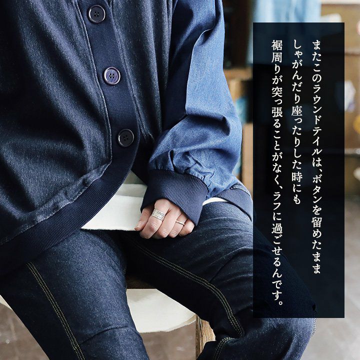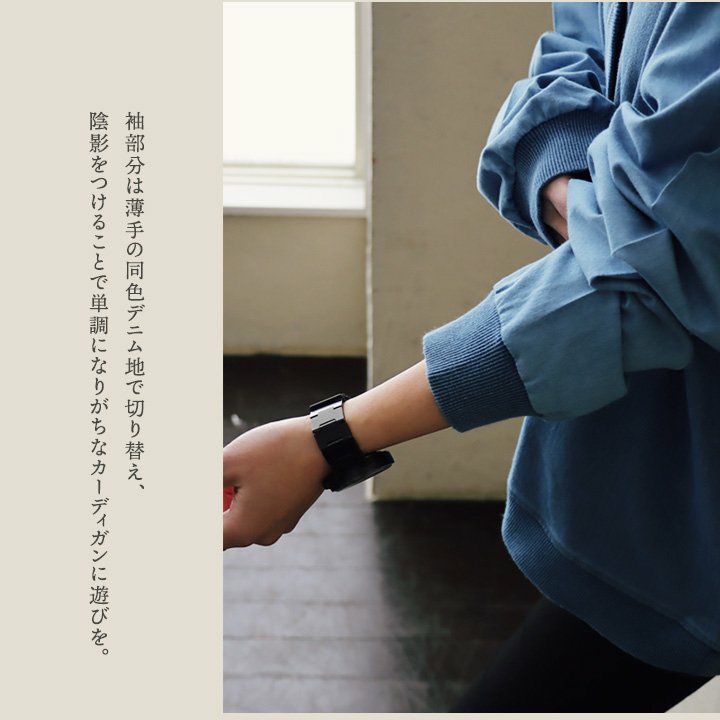 他の画像を見る さり気ない陰影と、工夫されたリラックス感にハマる。 カーディガン 長袖 デニム レディース ワイド 着痩せ 春 切り替え ラウンド 袖リブ 配色ステッチ 柔らか カットデニム ゆったり 体型カバー 大人 カジュアル パティ BLUETO ブルート 2~3日でお届け 販売価格 ¥ 6,490 税込 カートに入れる お気に入りに登録する