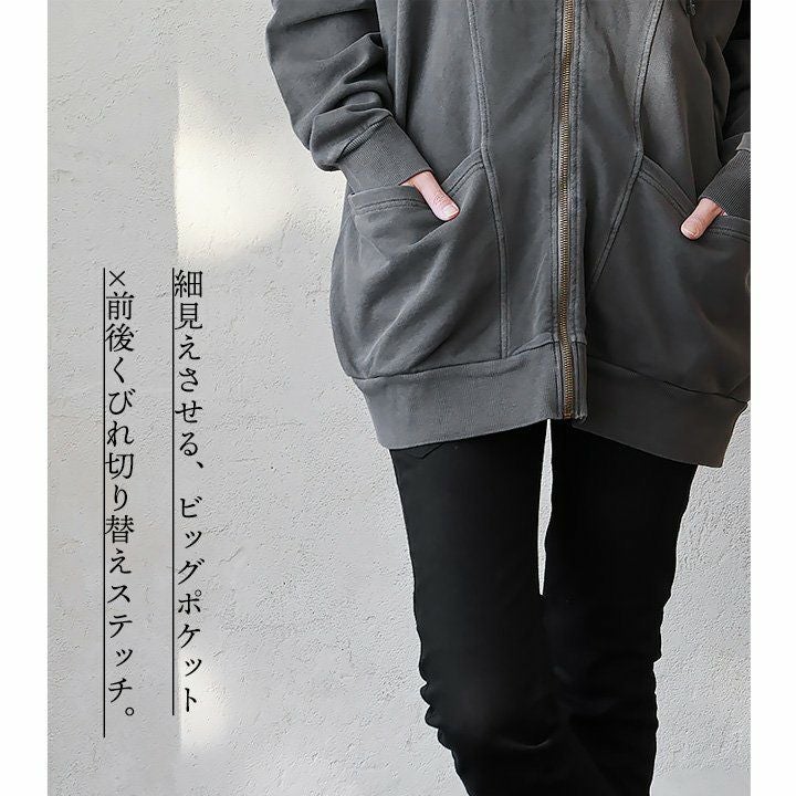他の画像を見る バサっと羽織れて、クールに見せる。 カーディガン スウェット 長袖 レディース ロング丈 ワイド すっきり 着痩せ 体系 お尻 カバー 細見え ハイネック フードなし ジップアップ 綿100% 切り替え ピグメント ヴィンテージ ビッグポケット リブ カジュアル パティ ALISTAIR アリステア 2~3日でお届け 販売価格 ¥ 5,940 税込 カートに入れる お気に入りに登録する