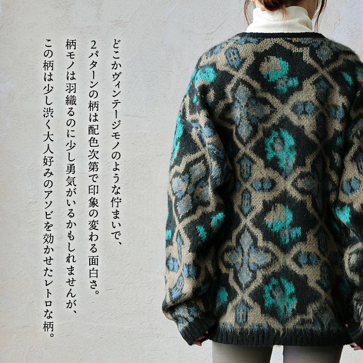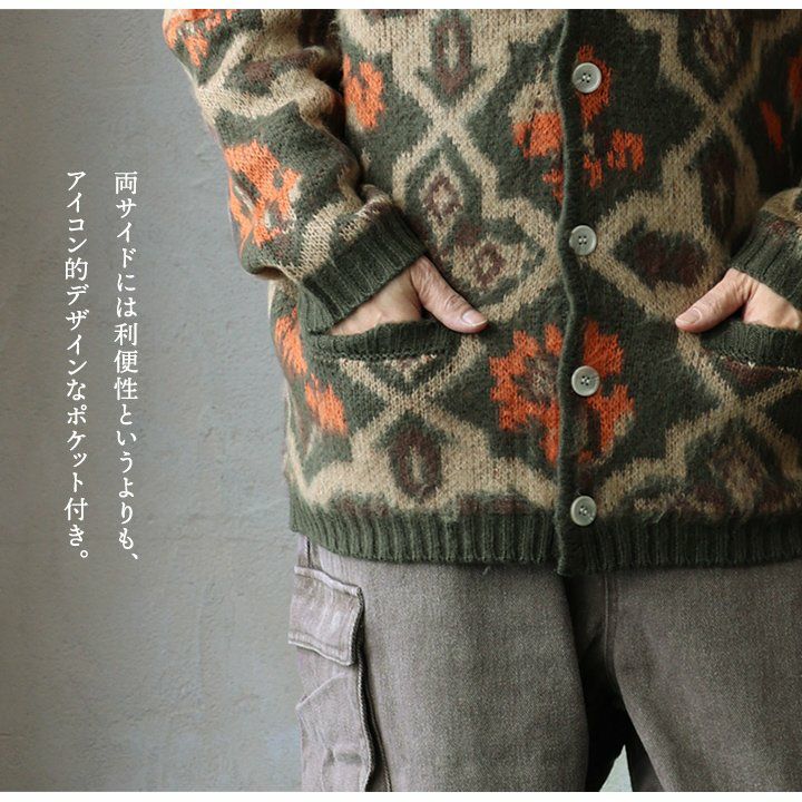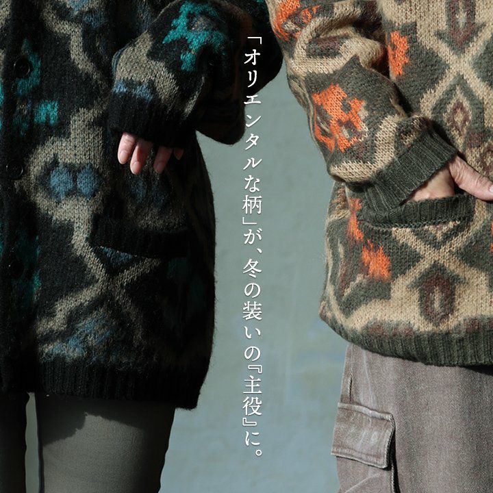 他の画像を見る 「オリエンタルな柄」が、冬の装いの『主役』に。 カーディガン カーデ 長袖 メンズ レディース Vネック 総柄 オリエンタル柄 ジャガード アクリル モヘアライク 暖かい 軽い 重ね着 ゆったり 大きいサイズ カジュアル ヴィンテージ レトロ 秋 冬 パティ 2~3日でお届け 販売価格 ¥ 8,690 税込 カートに入れる お気に入りに登録する