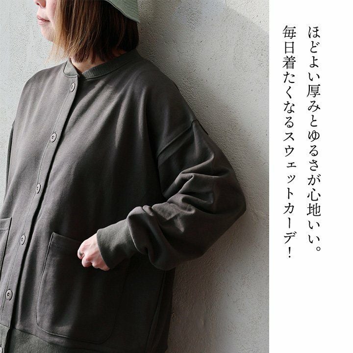 他の画像を見る ほどよい厚みとゆるさが心地いい。毎日着たくなるスウェットカーデ! カーディガン レディース ワイド すっきり 着痩せ 重ね着 スウェット 厚手 柔らかい 軽い コットン 大きいサイズ ポケット スエット 裏毛 エコ 抗菌 お尻 隠れ カバー クルーネック 梅春 大人 カジュアル パティ GENTIL ジャンティ 2~3日でお届け 販売価格 ¥ 6,490 税込 カートに入れる お気に入りに登録する
