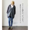 【モデルコメント】中は、トレーナーを合わせても問題はありません。全体的にしっかりとゆとりがありました。 【客観的コメント】お尻はすっぽりと隠れるくらいの着丈の長さです。バランスの良いシルエットで着れていましたね。