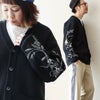 シンプルに見えて、袖で遊んでます。 カーディガン カーデ メンズ レディース Vネック ブラック 無地 袖刺繍 アクリル100% 軽い 暖かい 秋 冬 カジュアル