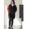 【モデルコメント】中は、トレーナーを合わせても問題はありません。全体的にしっかりとゆとりがありました。 【客観的コメント】太ももが半分くらい隠れる着丈の長さです。バランスの良いシルエットで着れていましたね。