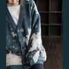 なんとも言えないこの「グランジ感」がツボ。 カーディガン カーデ ニット ニットカーデ メンズ レディース Vネック 総柄 起毛 暖かい 軽い ワイド カジュアル お洒落 秋 冬 BLUETO ブルート
