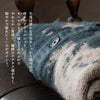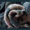 程よく厚みがあり、モヘヤのように暖かくふわふわでやわらかい質感のアクリルニット。着ると軽やかで、編地による伸縮性がややあり、透け感はありません。