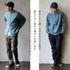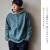 程よい厚みとハリのあるしっかりと目の詰まった、ややドライな風合いでユーズド感のあるスウェット生地。裏起毛で暖かさがありつつ、重たすぎない生地感です。伸縮性・透け感はありません。