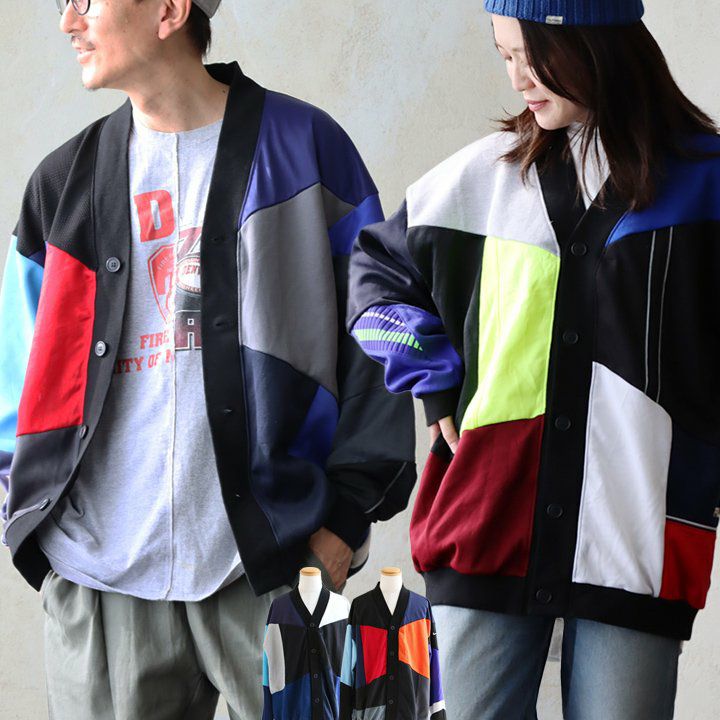 「ガチな古着好き」への「変化球」。 カーディガン 長袖 メンズ レディース 古着 リメイク ジャージ Vネック 伸縮性 リブ切り替え ゆったり 大きいサイズ 体型カバー カジュアル ヴィンテージ 秋 冬 パティ