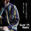 伝統とアソビ心に惹かれる、温もりある一着を。 SLOW HANDS スローハンズ カーディガン 長袖 メンズ レディース Vネック ストライプ 配色 厚手 モヘア ナイロン 暖かい ゆったり 大きいサイズ カジュアル 秋 冬 パティ